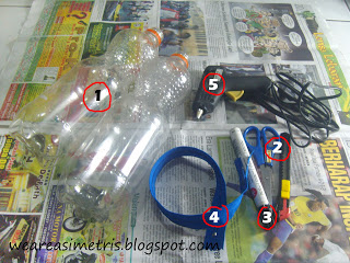 - 2 botol plastik ukuran 1.5 liter, 1 liter, atau 660 ml (tergantung keinginan dan kebutuhan).
